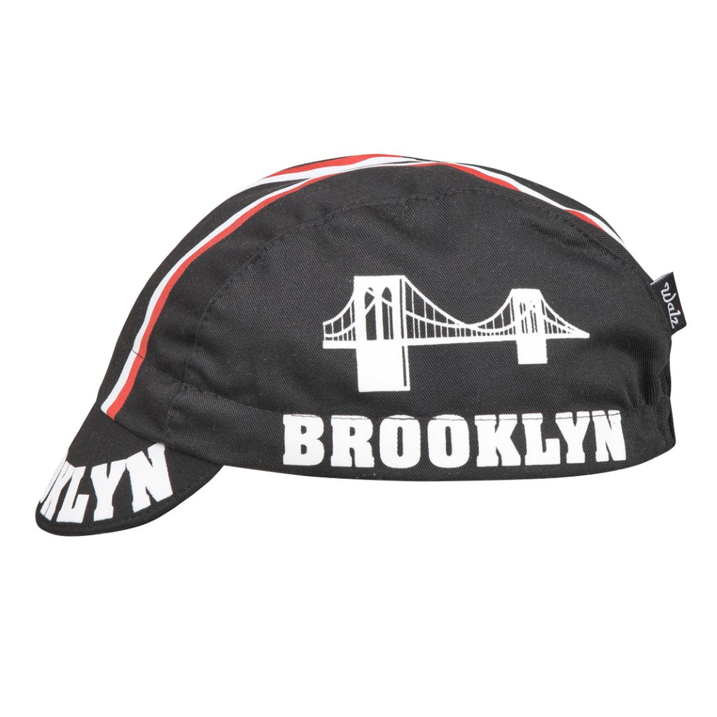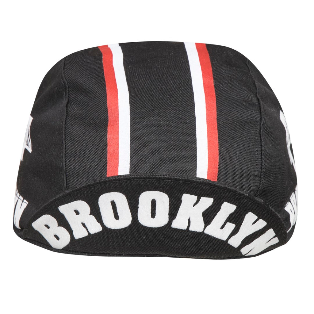 Originally made famous by Italian cycling legend Roger De Vlaeminck in the 1970s, the 3-panel black cotton cap features the eye-catching "BROOKLYN" logo in crisp white block letters on the bill with an image of the iconic bridge silk screened on both sides. The top panel includes the signature red, white, and black tricolor stripes. Whether tucked under a helmet or worn casually off the bike, it’s instantly recognizable.