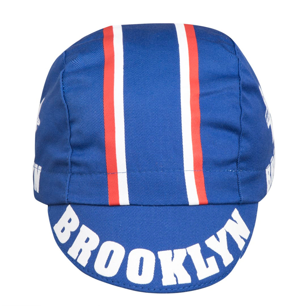 Originally made famous by Italian cycling legend Roger De Vlaeminck in the 1970s, the 3-panel royal blue cotton cap features the eye-catching "BROOKLYN" logo in crisp white block letters on the bill with an image of the iconic bridge silk screened on both sides. The top panel includes the signature red, white, and blue tricolor stripes. Whether tucked under a helmet or worn casually off the bike, it’s instantly recognizable.